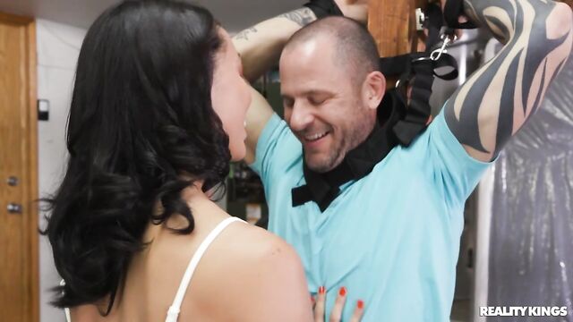 Description:Everything must go at Alexis Tae's garage sale, and not just the G-rated items. Alexis has a box of dicks and tricks to sell as well, and a set of straps piques browser Scott Nails's interest. Alexis says it's easier to demonstrate than to explain, and soon she's got Scott strapped up by the wrists in her garage! She teases him and makes him beg her to suck his cock, then it's Scott's turn to tie Alexis up and fuck her pussy. Turns out Scott found more than a good deal at this garage sale--he's also bringing home a new love of bondage.