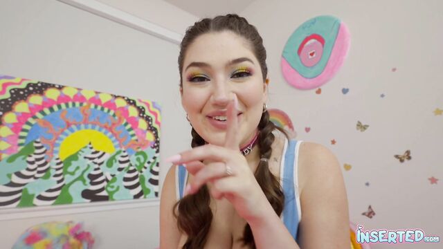 Descripción: Alyx just got home from soccer practice and she did a big no-no. She brought a boy home with her! She showed off her room and her “magic flower” pillow that she likes to rub on. During a phone call to her step-daddy she was treated to a spicy sausage treat for her mouth and pussy!