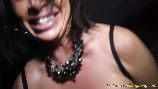 Amorosa en adelanto de grupo de Lederhosen Gangbang