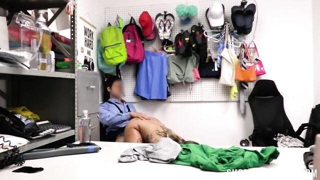 Description:At the store, Ava was reported for stealing some merchandise. She is a tattoo artist and she needs the supplies to open her new shop, but Officer Giovanni cannot allow this. When taken for questioning, Ava is uncooperative with the security guard, giving him false information and hiding the stolen goods. Giovanni knows about her lies, so he strips her naked and conducts a thorough cavity search. Now that Ava is fully nude, the officer pulls the merch that she stole and tells her to use it, rubbing some oil on Ava and tying her hands. Giovanni is willing to let her go this time, but in exchange, she must dance for him and show him a good time. Eager to go, Ava accepts the deal and adds a little spice to the mix.