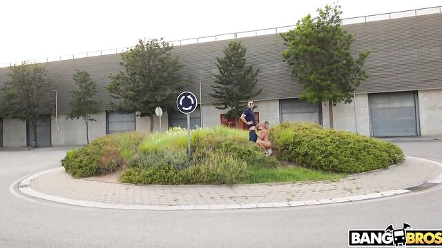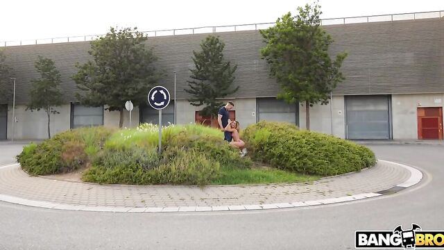 Description:Ada Lapiedra met with Alberto Blanco in the middle of the city. They started to kiss passionately. He removed her bikini top. She started to suck his dick. Three ladies walked by. They pretended that they were not doing anything while Ada’s pussy was all spread at the camera. They fucked in missionary. Then they walked to the next intersection. There was a roundabout. She was sucking his dick in the middle of the roundabout while cars were going by. Then went into a side street. The bus stop was right behind them. Here they fucked like bunnies who never fucked before. She was riding him all naked. Her perky nipples were so long. They fucked in many other positions until he came into her face and mouth. Finally city traffic could resume without distractions.