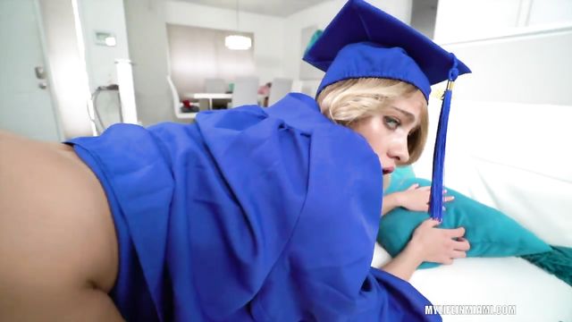 Descripción: Girlfriend Khloe Kapri was trying on her graduation gown when things turned frisky. She sucked and fucked in her gown and cap.
