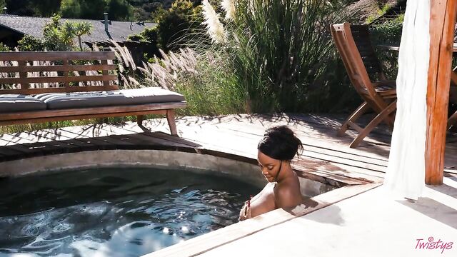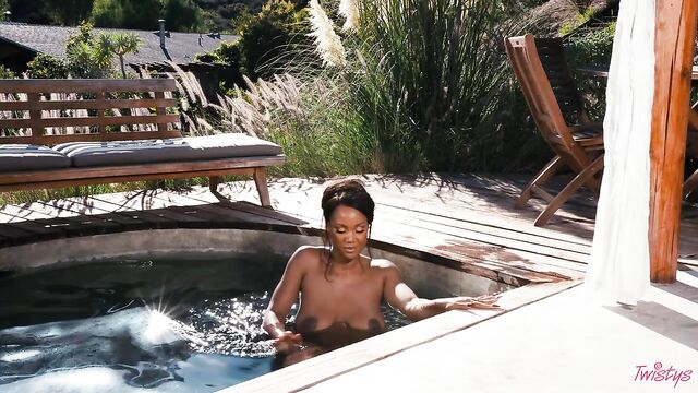 Descripción: It may be getting colder outside, but you'll forget all about that when you feel the sweltering heat of August Skye, your November Twistys Treat of the Month. August starts with a tease in a bandeau top, skirt, and shimmery body chains, heating things up with lots of smoldering eye contact. Then it's time to hit the pool in a green bikini, which she pulls down to show her big tits and perfect bubble booty, shaking her ass before she has a skinny-dip! August plays with her pussy and fucks herself with a toy by the pool, bending over to finger herself, then rubbing her clit till she cums.