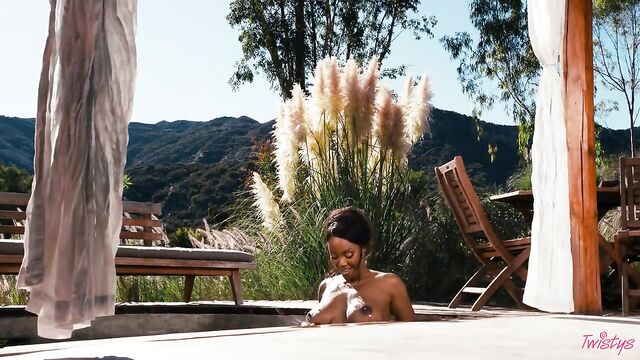 Description:It may be getting colder outside, but you'll forget all about that when you feel the sweltering heat of August Skye, your November Twistys Treat of the Month. August starts with a tease in a bandeau top, skirt, and shimmery body chains, heating things up with lots of smoldering eye contact. Then it's time to hit the pool in a green bikini, which she pulls down to show her big tits and perfect bubble booty, shaking her ass before she has a skinny-dip! August plays with her pussy and fucks herself with a toy by the pool, bending over to finger herself, then rubbing her clit till she cums.