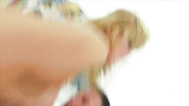 Descripción: This horny little blonde is anxious to take two dicks into her holes. She vacuums the cocks down then gets double penetrated and cum fed.