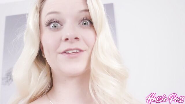 Description:Beautiful blonde spinner Riley Star is back from her porn hiatus, and we just had to match her up with footlong-phenom Damion Dayski for this interracial Hussie Pass update. After director Johnny Robins helps us get caught up with Riley, who we last saw here in 2020, the tanlined cutie then stands and disrobes so that she can warm up her very meaty vag, 1st digitally and then, with some assistance from Damion, with a large translucent rubber DONG! Damion then lubes up her petite frame, front and back, and she twerks for us. Riley then kneels for the big reveal, followed by her giving him a very sloppy gagjob while on her knees, in a lie-back blowjob, and on the couch in between his legs. Riley then gives him a slick footjob, followed by Damion going down on her moist vagina. Then he put it in! Riley takes ALL 12 inches of Damion's BBC folded up like a pretzel, missionary, reverse cowgirl, cowgirl, piledriver, airborn, and doggystyle until he finally pulls out and cums on her pretty little face. We caught up with the two of them in the shower after...