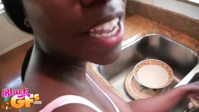 Description:The babe on this week's Black GFs episode didn't really want to be filmed so early in the morning. They had a huge party the night before and this poor girl was the one that had to clean it all up. She gets upset when she's surprised by her boyfriend who was filming her ass from behind while she was getting stuff done. She kept saying that it was too early to be messing around and that the house was a mess but her boyfriend wasn't having it. After just a little convincing, she gets with the program and gives in. They put the cleaning on the back burner for a few minutes and got down to business. Needless to say there was a bit more cleaning to do after the filming was done.