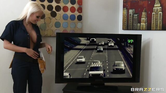 Description:Keiran has been waiting for the cable company all day. After hours of waiting, Keiran comes face to face with Jacky. She's been in the cable business for a long time, and she can always tell how big a man's cock is by looking at their TV. She's gonna give him the cable TV ride of his life.