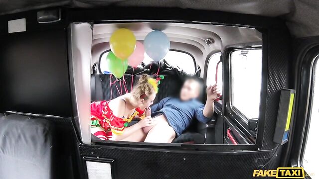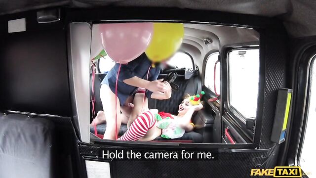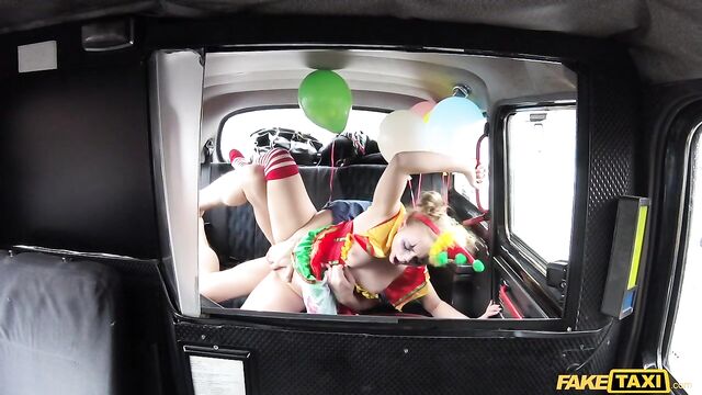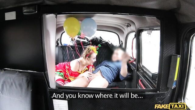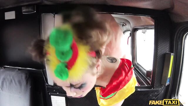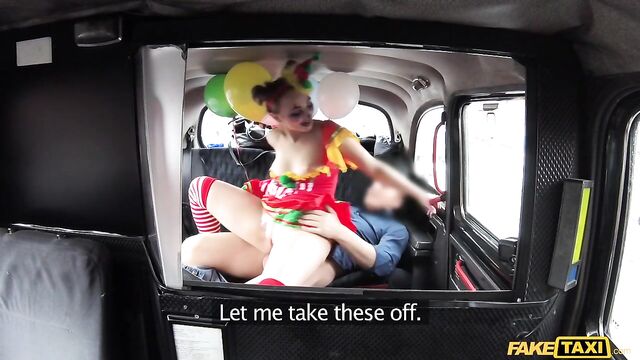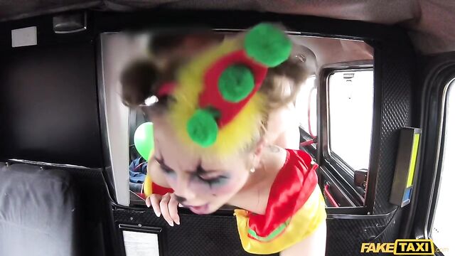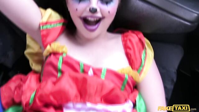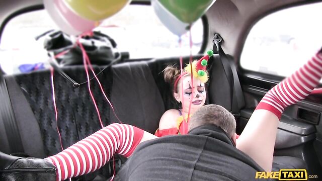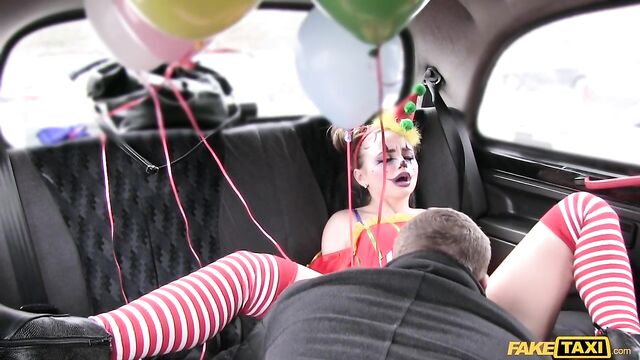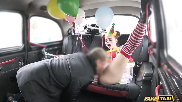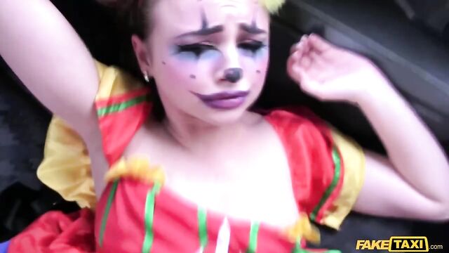 Description:The sexiest little clown climbed into my cab this morning, wearing a little clown dress and the most amazing makeup, dragging a handful of balloons behind her. But she looked very close to crying. Turns out, Lady Bug had gotten all dressed up to surprise her clown-loving BF, then caught him in bed with another woman. She was so sad, I suggested we have a little fun of our own. As I drove to find us a spot, Lady Bug started to cheer up, letting me peek under her little costume and showing off her beautiful clown arse. To make sure that smile was back for good, I fingered the pretty circus freak until she squirted everywhere, then I fucked her and came all over her face paint! The wildest and cutest ride of the week, for sure!