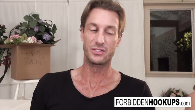 Rodaje con la inocente Riley Star y Hannah Hays con estrella porno de Forbidden Hookups