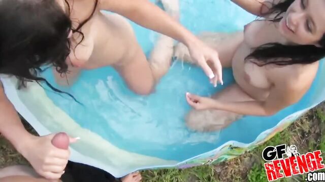 Description:I sure hope all you real amateur sex lovers are ready for a double dose of fun as in this latest video update we have two extremely scrumptious brunettes with banging bodies that they rock in their teeny tiny bikinis in the hot tub. These babes are totally into each other and somehow end up in a kiddy pool in which they get totally naughty as fuck! These babes are totally into licking lesbian pussy and they look fucking fantastic as they pleasure each other. Before you know it, the boyfriend/camera man joins as he can't contain all the pussy bumping going on and gives these girls some man meat. These babes look fucking awesome as they take it doggy style. This is one bad ass threesome you just have to check it out. This GF Revenge, real amateur sex video is totally hot to trot!