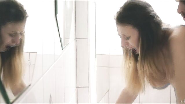 Description:Elegant brunette Emylia Argan poses in a satin dress that hugs her voluptuous body. As Andre Lupin’s erotic movie "Los Amantes" begins, Kristof Cale is photographing her in the grounds of a country mansion. Back in the bathroom of her suite, Emylia needs help unfastening the dress, and Kristof is happy to oblige. He’s shy at first when she lets it fall to expose her big beautiful breasts, but can’t resist her hungry kisses. Emylia shoves Kristof’s jeans down and strokes his stiff cock, then kneels to lick and suck it greedily. Kristof pulls Emylia’s lace panties down, nuzzling her fluffy bush as he licks and fingers her, until she orgasms with a wail of pleasure. She leans back against the sink as he thrusts into her soaked pussy, squeezing her jiggling boobs as he fucks her vigorously and makes her climax again. Turning around, Emylia bends over so her lover can drill her hard from behind, driving her wild. When she’s enjoyed another intense orgasm, she sucks and jerks his thick shaft until he shoots his load over her breasts, then smiles happily to herself as she steps into the shower.