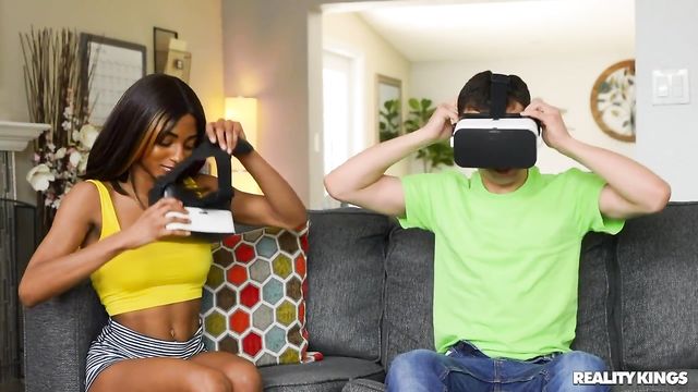 Descripción: Alicia Williams is a sweet petite blonde and a very naughty roommate. When Johnny The Kid uses his VR headset for the first time, he can't believe what he's seeing. He begs his girlfriend to give him a handjob while riding a virtual roller coaster. His girlfriend's not having it, but Alicia is. She sees her chance to get in there and gets to groping right as his girlfriend returns with her own VR headset. She catches Alicia and scolds her, but she's got more important things on her mind, like kicking Johnny's ass in a game. Alicia watches from afar and seizes her opportunity to fuck and suck Johnny while his girlfriend is distracted.