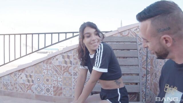 Description:Luz Sanchez knows fucking her trainer is wrong, but he is so much better at sex than her boyfriend. He's taught her so much about her own pleasure and she loves that he has the balls to fuck her just about anywhere, like on this rooftop where they can for get caught!