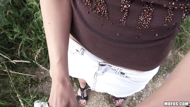 Descripción: Dude spotted Ebbi looking at some scooters, and could tell she was the kind of chick who liked fast cars and faster money. Once he flashed some cash her way, she gave the pussy up quick, and they had some public sex right there by the dealership!