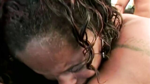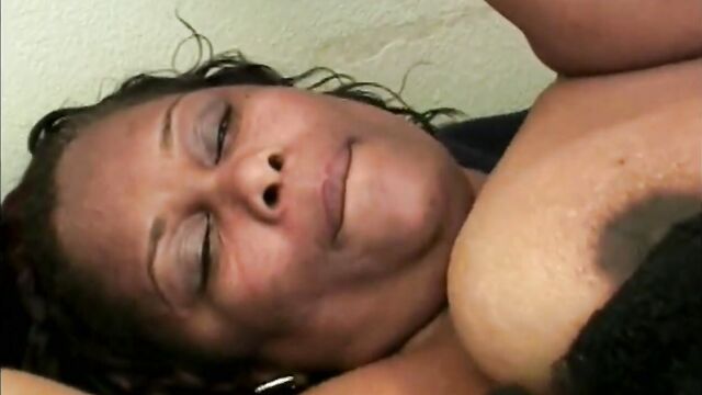 Descripción: Chubby ebony slut with big nipples gets banged and jizzed on tits.