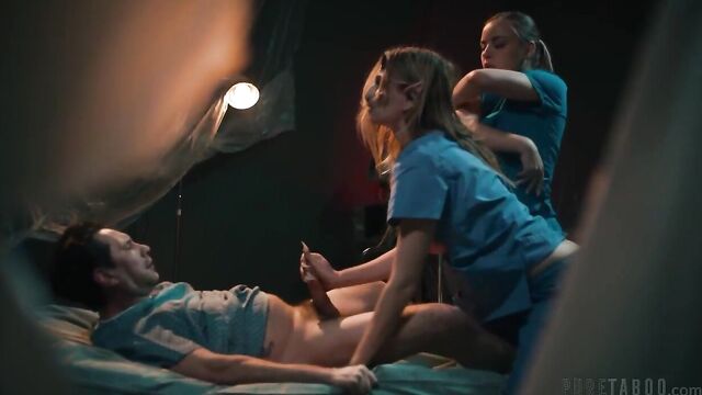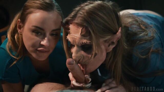 Description:A patient, Tommy (Tommy Pistol), is heading into a routine surgery. He's a bit nervous, but the nurse (Anna Claire Clouds) assures him that everything will be fine. However, just before the procedure begins, the nurse and the surgeon (Ashley Lane) start acting a bit suspiciously.When Tommy becomes fully alert after the surgery, he finds himself in the same room, but now he's all alone... and something feels very, very wrong. He frantically removes his bandages, and is horrified to see that his penis is completely gone. Tommy panics, but he finds a note telling him to go to the basement.Tommy enters the basement, and is shocked to find that the surgeon has transformed into a terrifying monster, and she's using Tommy's detached penis to fuck the nurse. Tommy pleads for his cock back, but the monster says it will cost him his soul and much more, because she wants to create a human-demon hybrid. Tommy is desperate, so he agrees to the bargain. Tommy's dick is reattached to his body, but now he has to fulfill his half of the deal by having a threesome with the monster and the nurse until their twisted desires are satisfied...