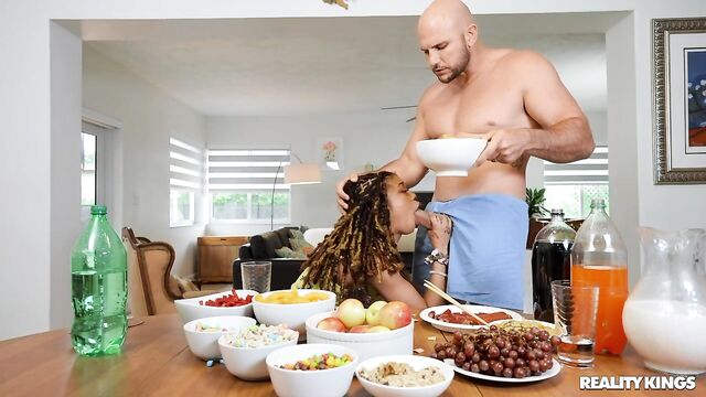 Description:Total snack Jeni Angel chases away her boyfriend twice when he interrupts her mukbang video, but when roommate Jmac shows up and offers her a little more sausage, she just has to have a taste. Jeni sucks the massive cock, then heads into the bedroom to take every inch of that dick in her pussy! Jeni makes an ahegao face as she throws back her jiggly booty on Jmac's cock, and she finishes up her mukbang by swallowing his cum!
