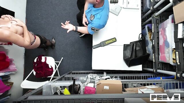 Description:Just because she's blonde, busty, and tall doesn't mean she can't steal. In fact, her status as a public figure and the way she makes people horny as she walks by are great distractions that she could easily use to her advantage. So, I knew I had to do a deep, thorough cavity search on her the second I laid eyes on her. She was pissed, but I moved her massive tits and shoved my fingers inside her ass as she complained. I was sure she was guilty, and I was right; she had stolen some condoms. Of course, I'm a very understanding person, so I gave her two choices: she could go to jail, which would look horrible for her public image, or we could pretend that never happened if she had a taste of my hard dick and let me cum inside her pussy. I even let her take the stolen condoms home since we didn't need them for the creampie I gave her.