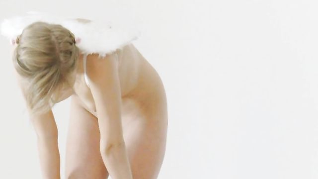 Description:Here we have a solo with 18 year old Audrey. She has an extremely tiny frame with A cup titties and a cute little ass. Shes wearing angel wings and is just cute as fuck! She feels up her tits before teasing herself through her panties. Then when shes had enough, the undies come off and her fingers rub her tight teeny twat until she orgasms multiple times! Enjoy!