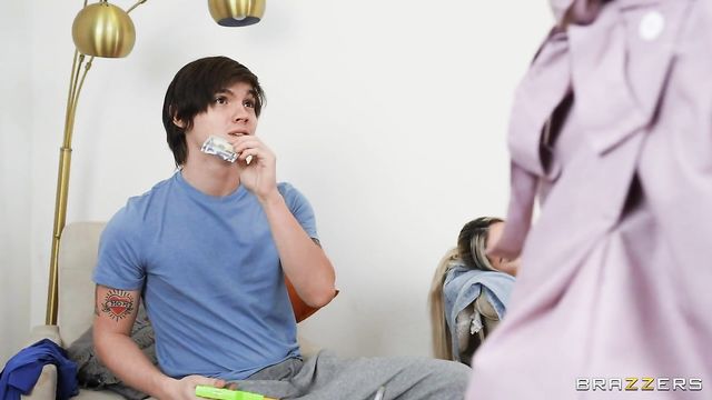 Descripción: Slovenly Tyler & his lazy girlfriend call a cleaning service to take care of their disgusting loft while they do what they do best – watch TV & play video games. As curvy Osa Lovely dips, bends and crouches to pick up the filthy mess they have left everywhere, Tyler can’t help but have his interest piqued by her amazing assets. Boldly, he makes offers to & moves on Osa when his girlfriend naps. Osa is a little shocked at first, but is fairly impressed with this slacker’s cock, so she decides to have a little fun herself; on their dollar!