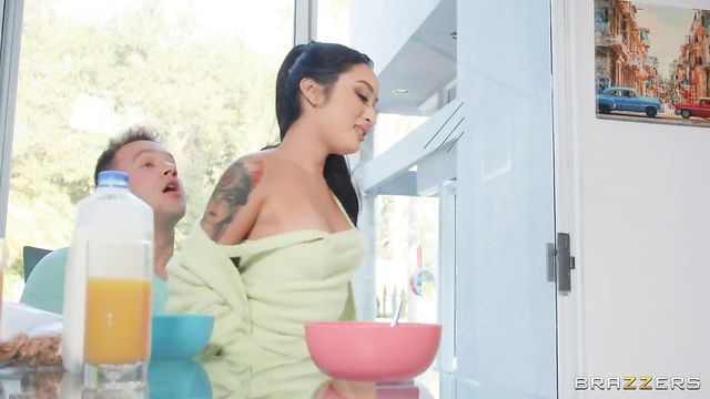 Description:Roommates and frenemies, the delicious Avery Black and the sublime Nicole Doshi constantly fight for guys' attention. This time, the third roommate, Van Wylde, is the fighting ground. Avery seduces the lucky man at the breakfast table while the sneaky Nicole flashes and taunts him from the living room. After she successfully lures Van in her bedroom with steamy selfies, Nicole gives all she got in a skillful deepthroat. The piqued Avery storms in, but instead of a catfight, the two perverse women agree to share Van's dick and team up for an unforgettable threesome.