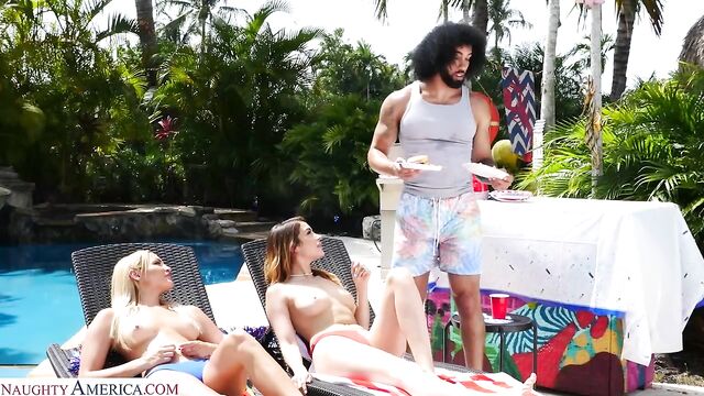 Description:Chanel Brooks & Mila Monet are having a little BBQ and James is manning the grill. While the girls love burgers, they would much rather have sausage to celebrate this 4th of July, so when James stops BBQ'ing these girls go to town on his juicy cock!