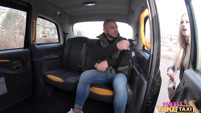 Description:I was driving the Fake Taxi today when I picked up this handsome guy called Chris who was in Prague celebrating his birthday. On the way to the city centre, I also picked up my gorgeous, blonde-haired friend Sasha, and she couldn’t resist showing Chris her huge, fake boobs as a special birthday treat! I pulled over and joined Chris and Sasha in the backseat of the cab, where the three of us had our own intimate party. We each took turns sucking Chris' hard cock in a sloppy double blowjob, then we bent over so Chris could fuck our wet, trimmed pussies from behind doggystyle. Chris loved watching as Sasha slid her fingers inside my pussy and licked my clit, then I climbed on top of Chris’ lap to bounce up and down on his huge dick in cowgirl. The beefy hunk orgasmed while fucking me again in missionary, then I shoved my tongue into Sasha’s hole until she came!